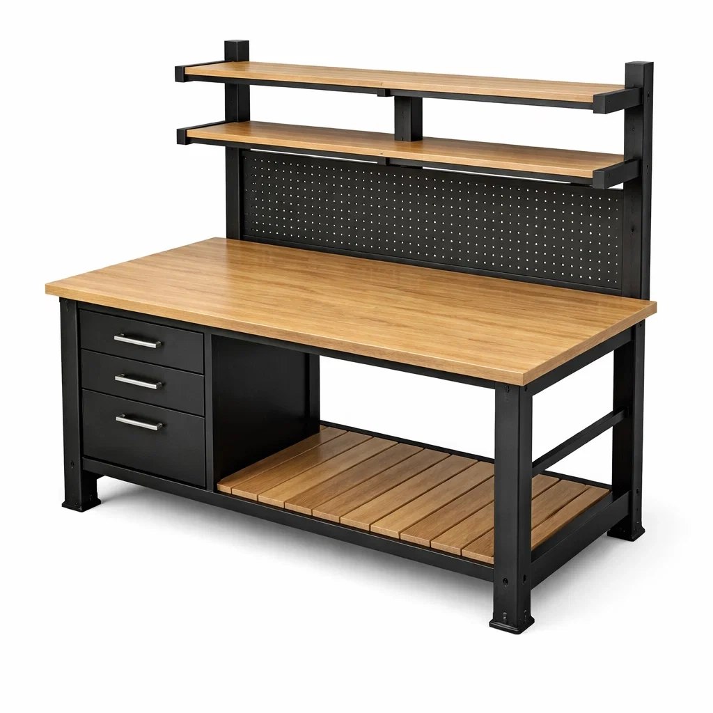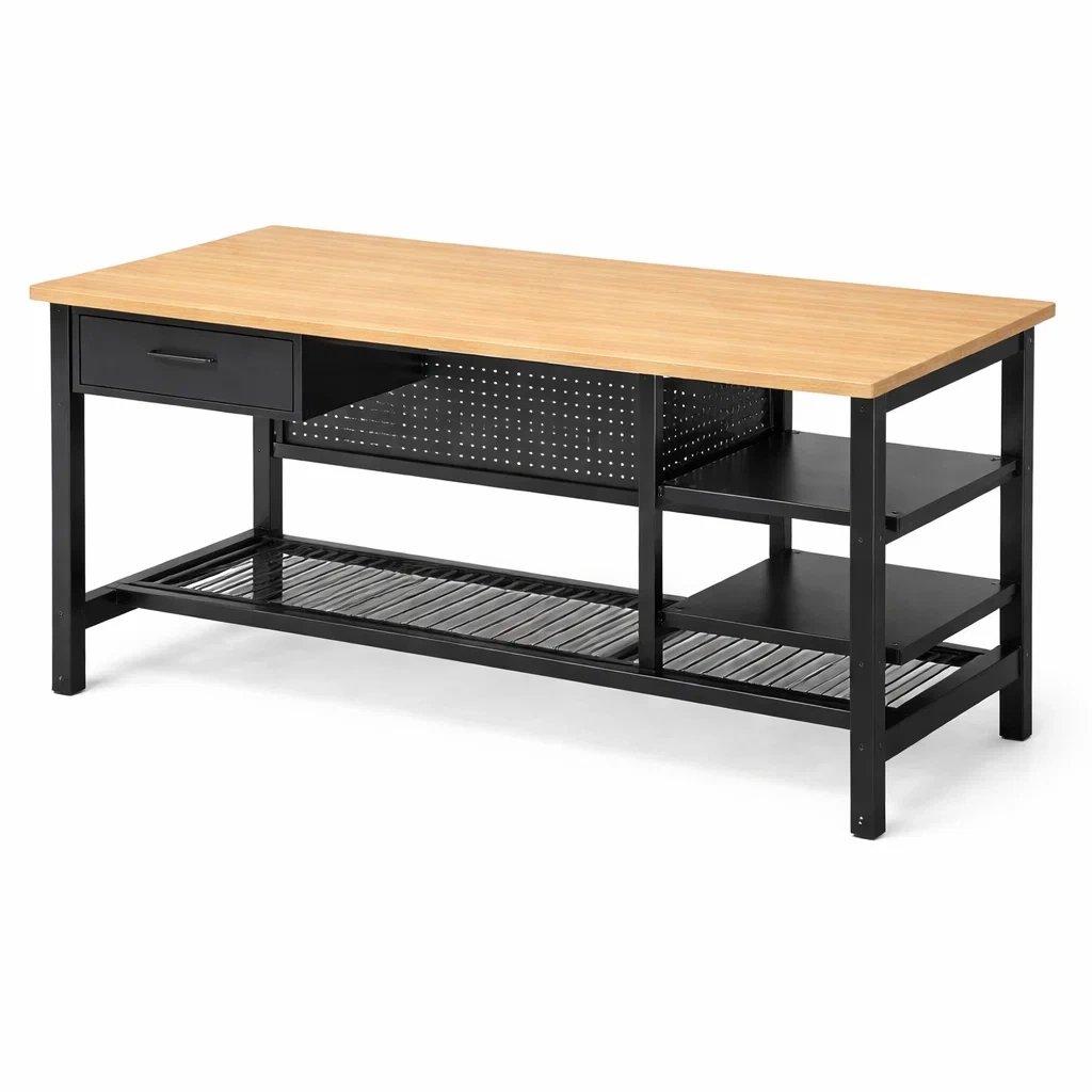 Werkbank metall holz mit schublade und lochwand