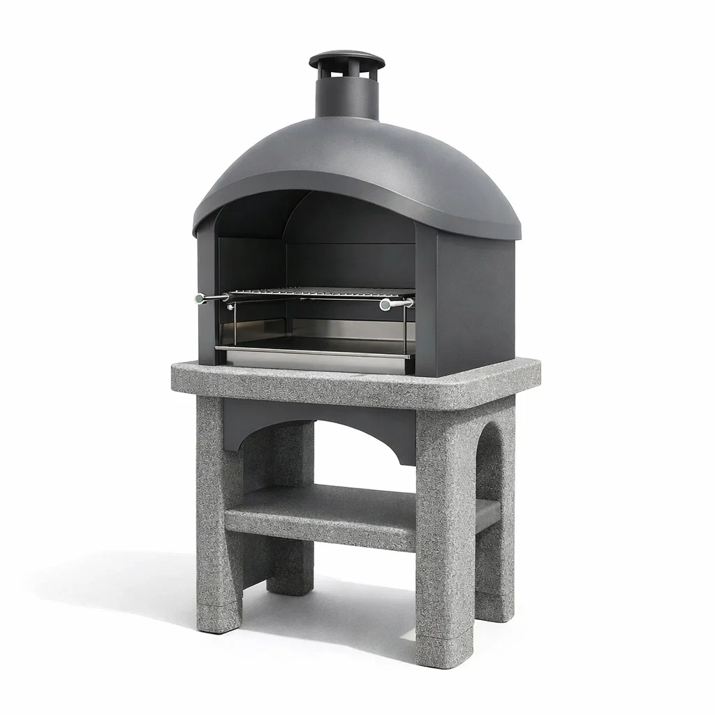 Material: Feuerfester Beton, rostfreier Stahl