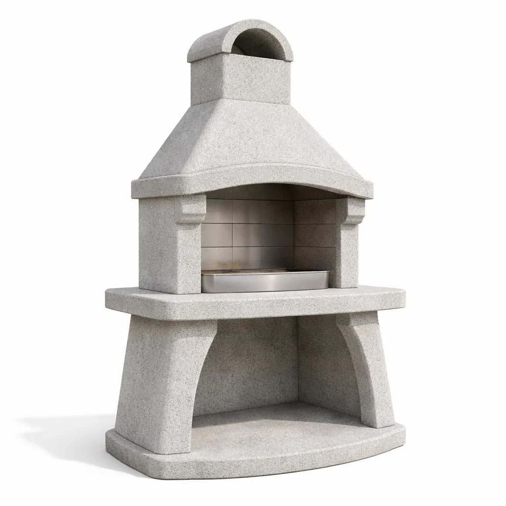 Material: Feuerfester Beton, Grillrost aus Edelstahl