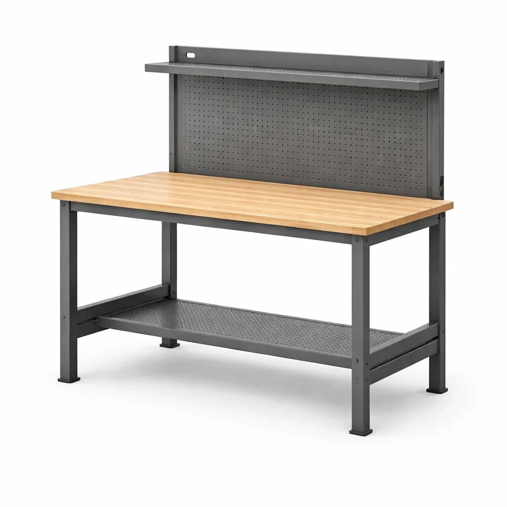Werkbank holz arbeitsfläche metallrahmen grau